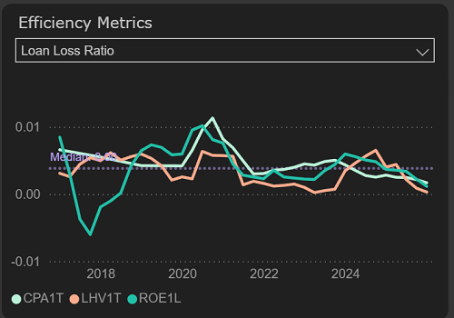 Lower impairment expenses supported 2025 results – particularly for Artea and LHV. However, while all three maintain strong loan loss ratios, any deterioration in credit quality would add further pressure on profitability.