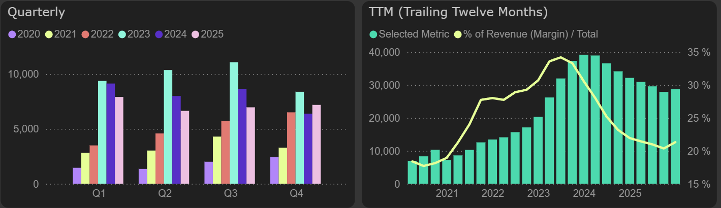 A positive development is that in the fourth quarter of 2025, the decline in net interest income stabilized — it was almost the same as in 2024. Quarter-on-quarter growth in 2025 is also visible: in the fourth quarter, net interest income was 4% higher than in the third quarter. LHV Group showed a similar trend, although slightly more pronounced, with growth of 8% QoQ.