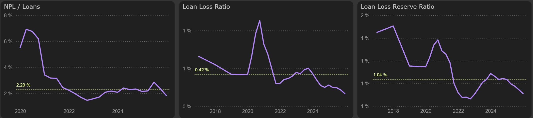 In 2025, fewer impairment costs were accrued, bringing the loan loss ratio to its best historical level — 0.17%.