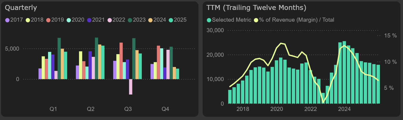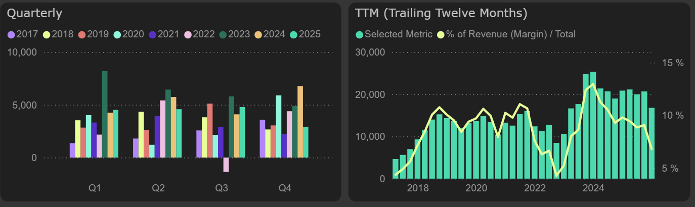 As a result of these two factors, the picture at the operating profit level is the opposite – in the fourth quarter of 2025, it was 53% lower than a year earlier.