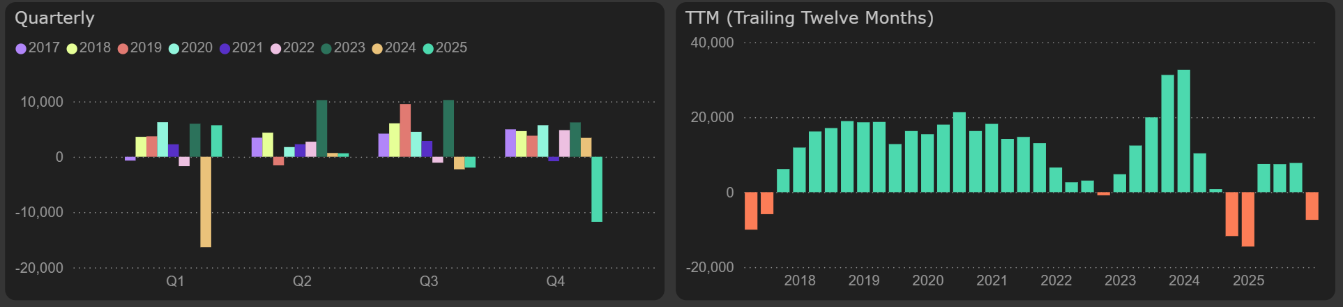 However, operating expenses were significantly harder to control, surging by 55% in the fourth quarter of 2025 – €4.3M more than a year earlier. As a result, the entire increase in gross profit was wiped out by rising costs.