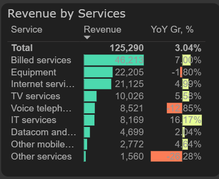 Telia Lietuva's revenue reached €125.3M in Q3, reflecting a 3% increase compared to the previous year. The main sources of revenue growth remained the same as throughout this year. Compared to Q3 of the previous year, revenue from mobile services increased by €3M (+7% YoY), while revenue from IT services (+16% YoY) and internet services (+5% YoY) grew by €1M each.